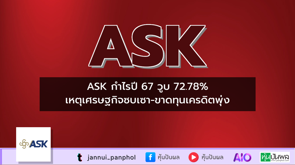 ASK เผชิญปี 67 สุดท้าทาย กำไรทรุดฮวบกว่า 72% กดดันจากภาวะเศรษฐกิจชะลอตัวและผลขาดทุนด้านเครดิตที่คาดว่าจะเกิดขึ้นเพิ่มขึ้น