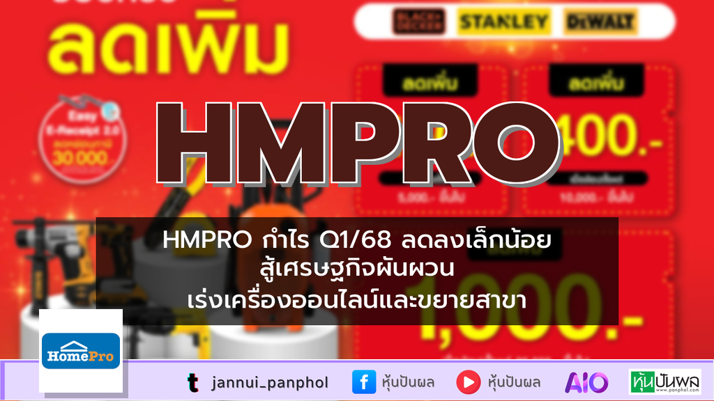 HMPRO กำไร Q1/68 ลดลงเล็กน้อย สู้เศรษฐกิจผันผวน เร่งเครื่องออนไลน์และขยายสาขา