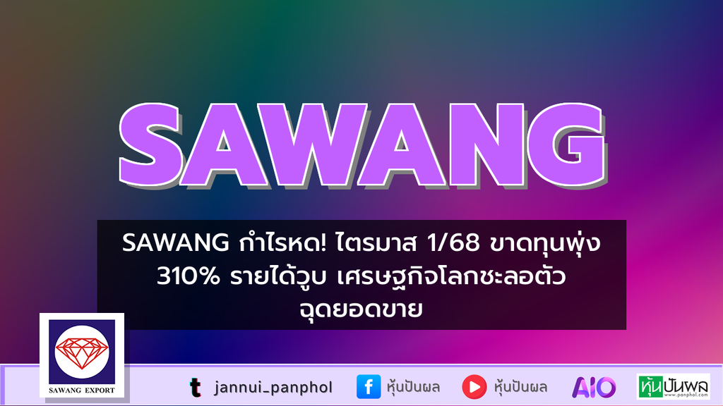 SAWANG กำไรหด! ไตรมาส 1/68 ขาดทุนพุ่ง 310% รายได้วูบ เศรษฐกิจโลกชะลอตัว ฉุดยอดขาย