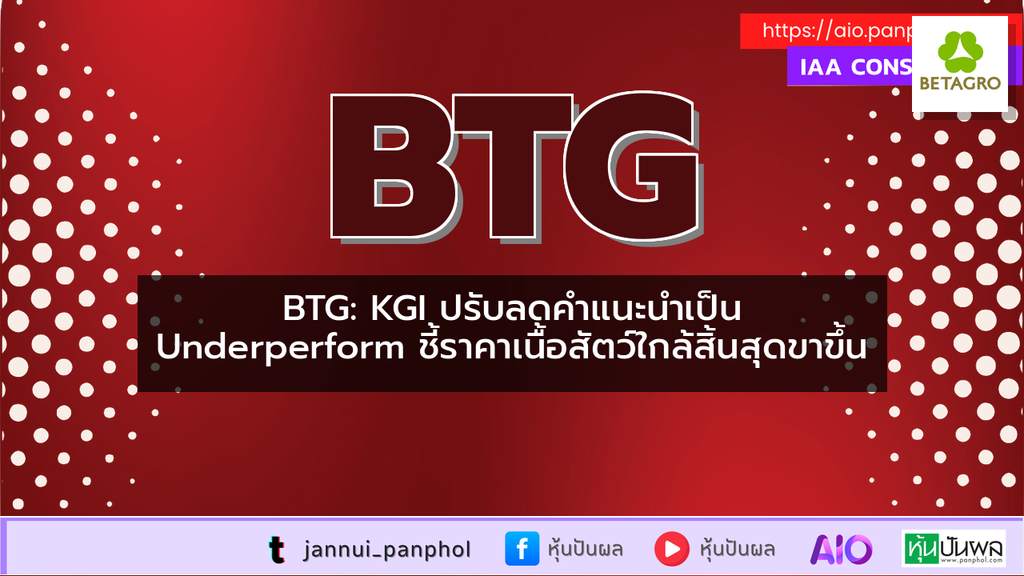 BTG: KGI ปรับลดคำแนะนำเป็น Underperform ชี้ราคาเนื้อสัตว์ใกล้สิ้นสุดขาขึ้น