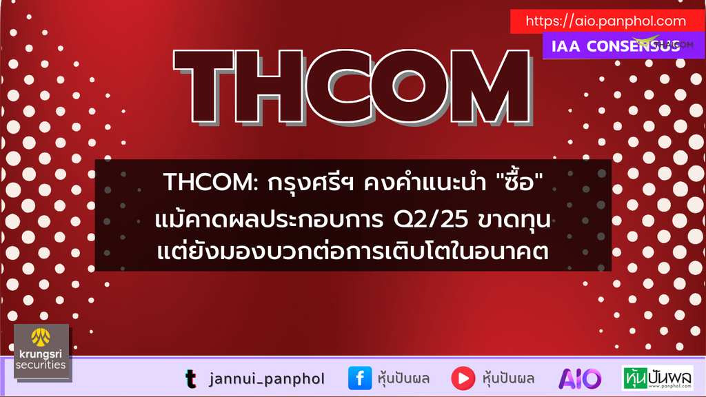 THCOM: กรุงศรีฯ คงคำแนะนำ "ซื้อ" แม้คาดผลประกอบการ Q2/25 ขาดทุน แต่ยังมองบวกต่อการเติบโตในอนาคต