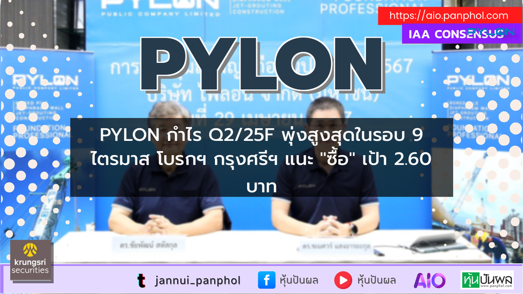 PYLON กำไร Q2/25F พุ่งสูงสุดในรอบ 9 ไตรมาส โบรกฯ กรุงศรีฯ แนะ "ซื้อ" เป้า 2.60 บาท