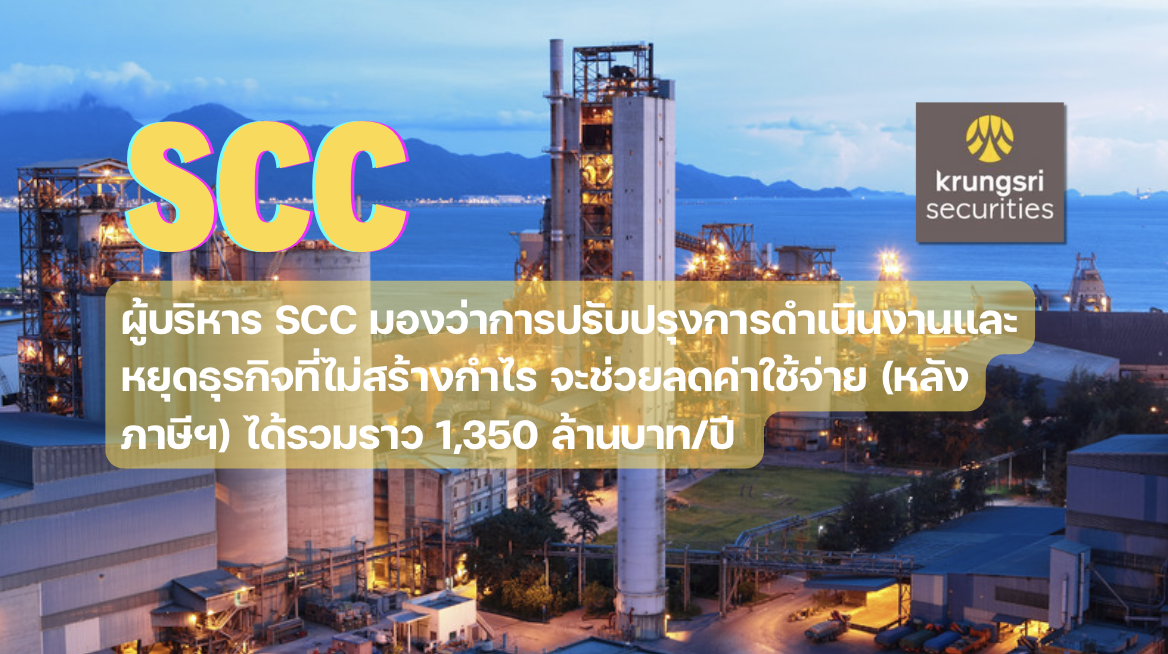 ผู้บริหาร SCC มองว่าการปรับปรุงการดำเนินงานและหยุดธุรกิจที่ไม่สร้างกำไร จะช่วยลดค่าใช้จ่าย (หลังภาษีฯ) ได้รวมราว 1,350 ล้านบาท/ปี โดยแบ่งเป็น 1) ส่วนที่เกิดจากการปรับปรุงโครงสร้างภายในราว 590 ล้านบาทต่อปี (ปิด 3 บริษัท เกิด One-time expense ใน 2024 ราว 1,600 ล้านบาท) และ 2) การหยุดธุรกิจที่ไม่ทำกำไรเพิ่มเติมไม่ต่ำกว่า 5 บริษัท (จะมีค่าใช้จ่าย One-time จากการปิดด้วย) คาดเพิ่มกำไรได้ราว 760 ล้านบาท ทั้งนี้บริษัทอยู่ระหว่างพิจารณาการ Dispose ธุรกิจ Non-core บางส่วนเพื่อเพิ่มกระแสเงินสดด้วย